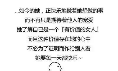 每个人都要学会为自己的人生负责。你要做的,从来不是依附于一个人或者一段婚姻,而是不断成长,让自己变得圆满。